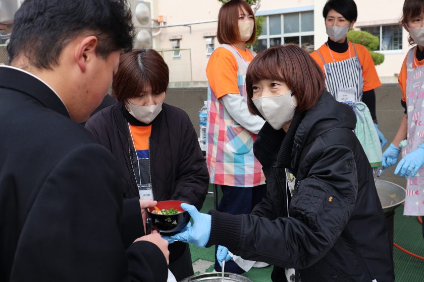 12月23日にPTAのみなさんの協力により、部活動支援会(蒲とん汁)を開催することができました。生徒たちに豚汁とおしるこが振る舞われました。生徒は豚汁を食べ、身体を温めながら2学期を締めくくることが