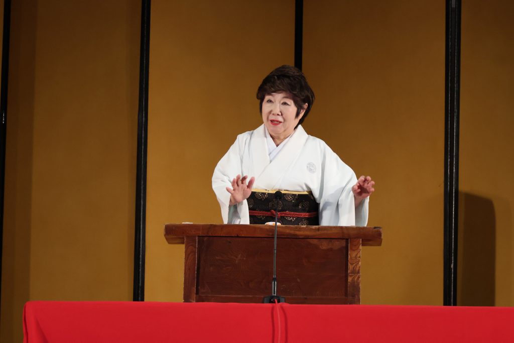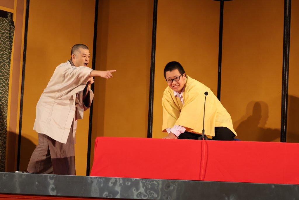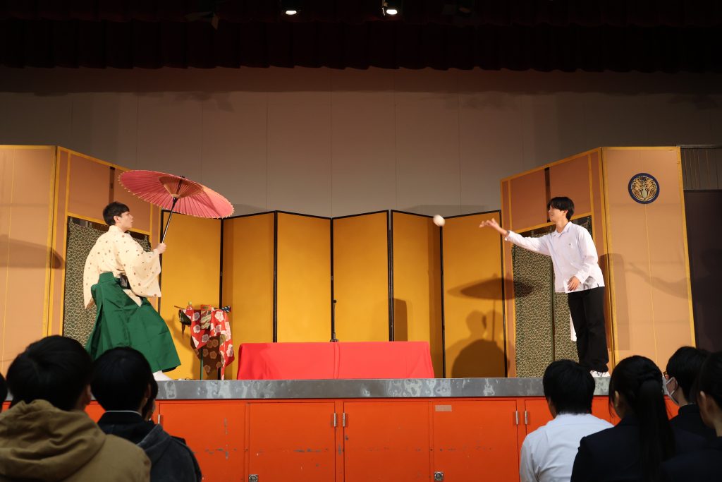 お知らせ/学校生活 芸術鑑賞会 2025年11月6日 11月5日に芸術鑑賞会が行われました。 今年度は一龍斎貞友様、柳家㐂三郎様、柳貴家雪之介様による「学校寄席」でした。普段の学校生活では触れることの少ない、落語・色物・怪談の演目を見たり、聴いたりしてまたとない経験になりました。また、落語体験コーナーでは、伝統芸能を身近に感じることができました。