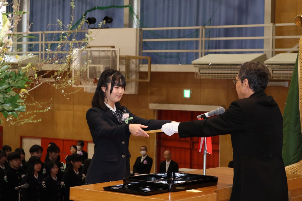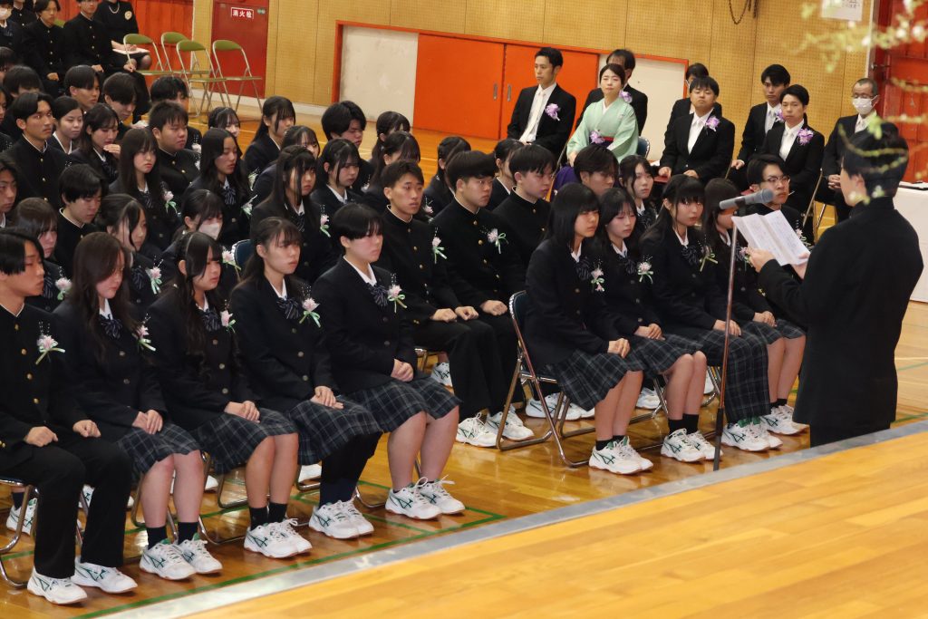 お知らせ/学校生活 第56回卒業証書授与式 2026年3月4日 3月2日に第56回卒業証書授与式を挙行いたしました。卒業生一人一人が胸を張って入場する姿は、この3年間の成長を感じさせ、会場全体があたたかな雰囲気に包まれました。蒲郡市長、校長先生や在校生の皆さまから応援の言葉をいただき、卒業生の表情には新たな一歩への決意があふれていました。 卒業生の皆さん、ご卒業おめでとうございます。皆さんの未来が輝かしいものでありますよう、教職員一同心より願っています。
